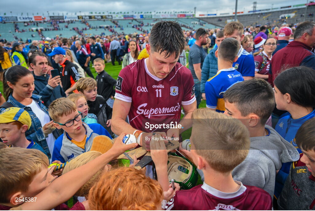 24 June 2023; Cianan Fahy of Galway signs autographs after the GAA Hurling All-Ireland Senior Championship Quarter Final match between Galway and Tipperary at TUS Gaelic Grounds in Limerick. Photo by Ray McManus/Sportsfile