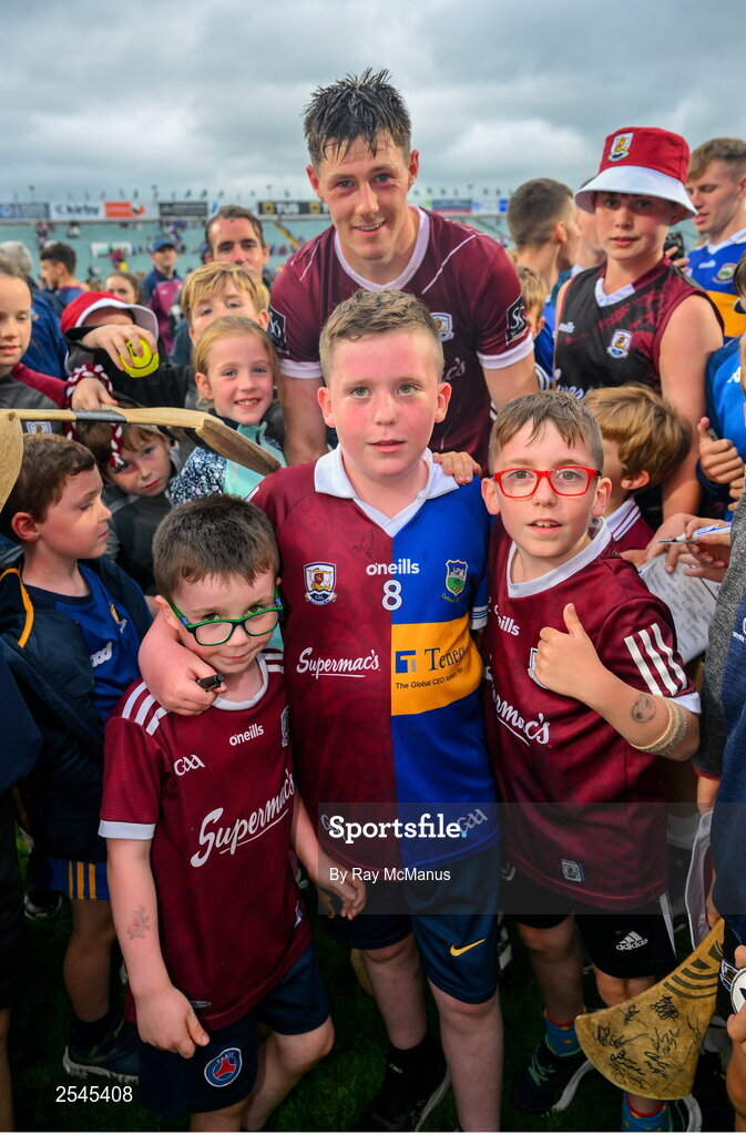 24 June 2023; Cianan Fahy of Galway with supporters including Conor, Enna and Daithí Fanning, from Oranmore, after the GAA Hurling All-Ireland Senior Championship Quarter Final match between Galway and Tipperary at TUS Gaelic Grounds in Limerick. Photo by Ray McManus/Sportsfile