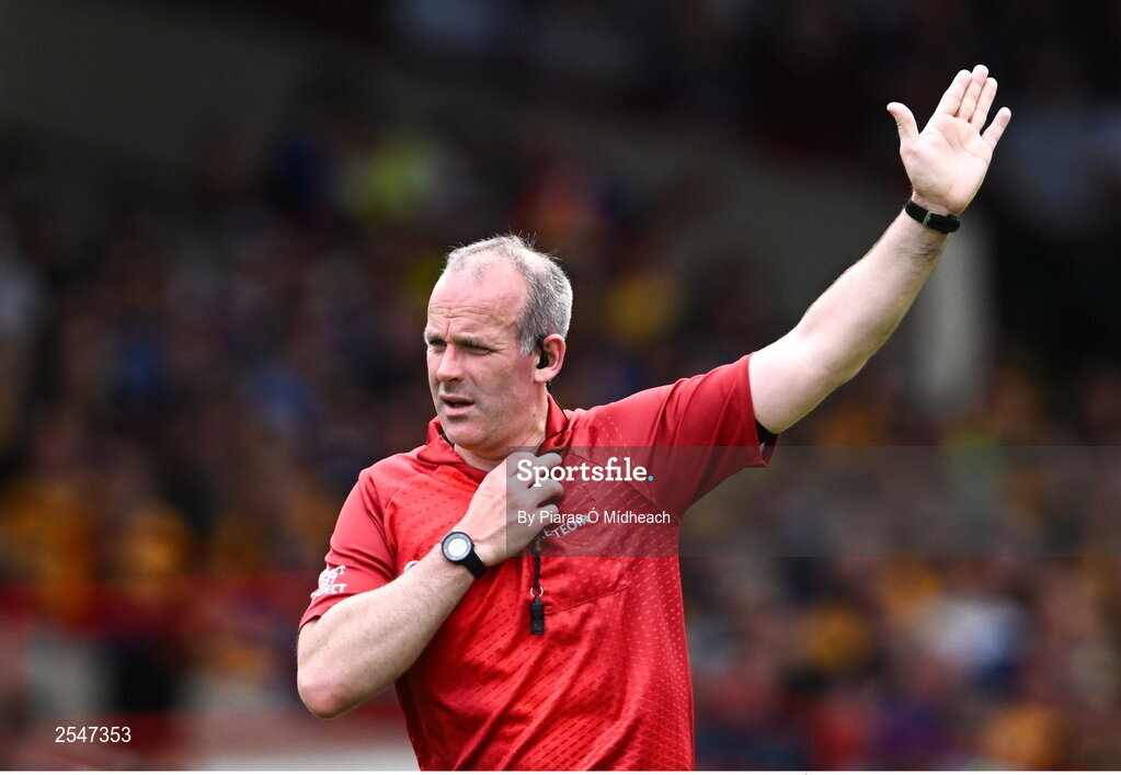 24 June 2023; Referee Johnny Murphy during the GAA Hurling All-Ireland Senior Championship Quarter Final match between Clare and Dublin at TUS Gaelic Grounds in Limerick. Photo by Piaras Ó Mídheach/Sportsfile
