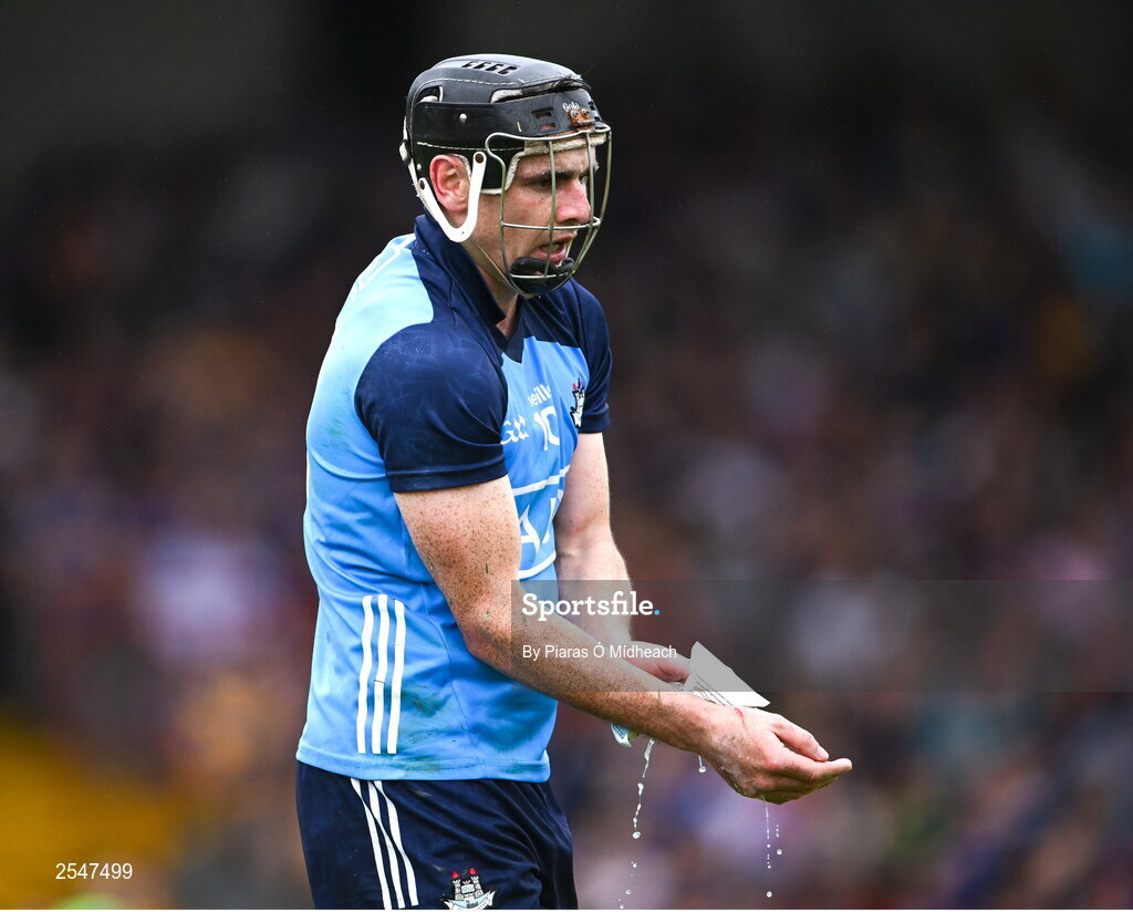 24 June 2023; Danny Sutcliffe of Dublin puts ice on his hand after a tackle during the GAA Hurling All-Ireland Senior Championship Quarter Final match between Clare and Dublin at TUS Gaelic Grounds in Limerick. Photo by Piaras Ó Mídheach/Sportsfile