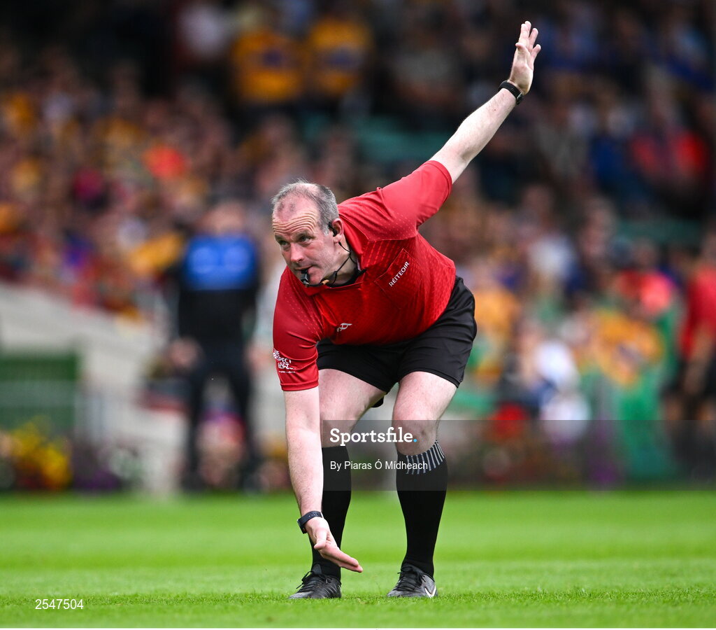 24 June 2023; Referee Johnny Murphy during the GAA Hurling All-Ireland Senior Championship Quarter Final match between Clare and Dublin at TUS Gaelic Grounds in Limerick. Photo by Piaras Ó Mídheach/Sportsfile