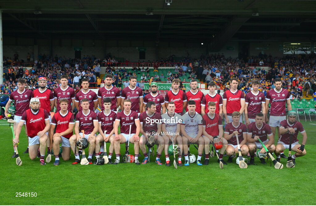24 June 2023; The Galway squad before the GAA Hurling All-Ireland Senior Championship Quarter Final match between Galway and Tipperary at TUS Gaelic Grounds in Limerick. Photo by Ray McManus/Sportsfile