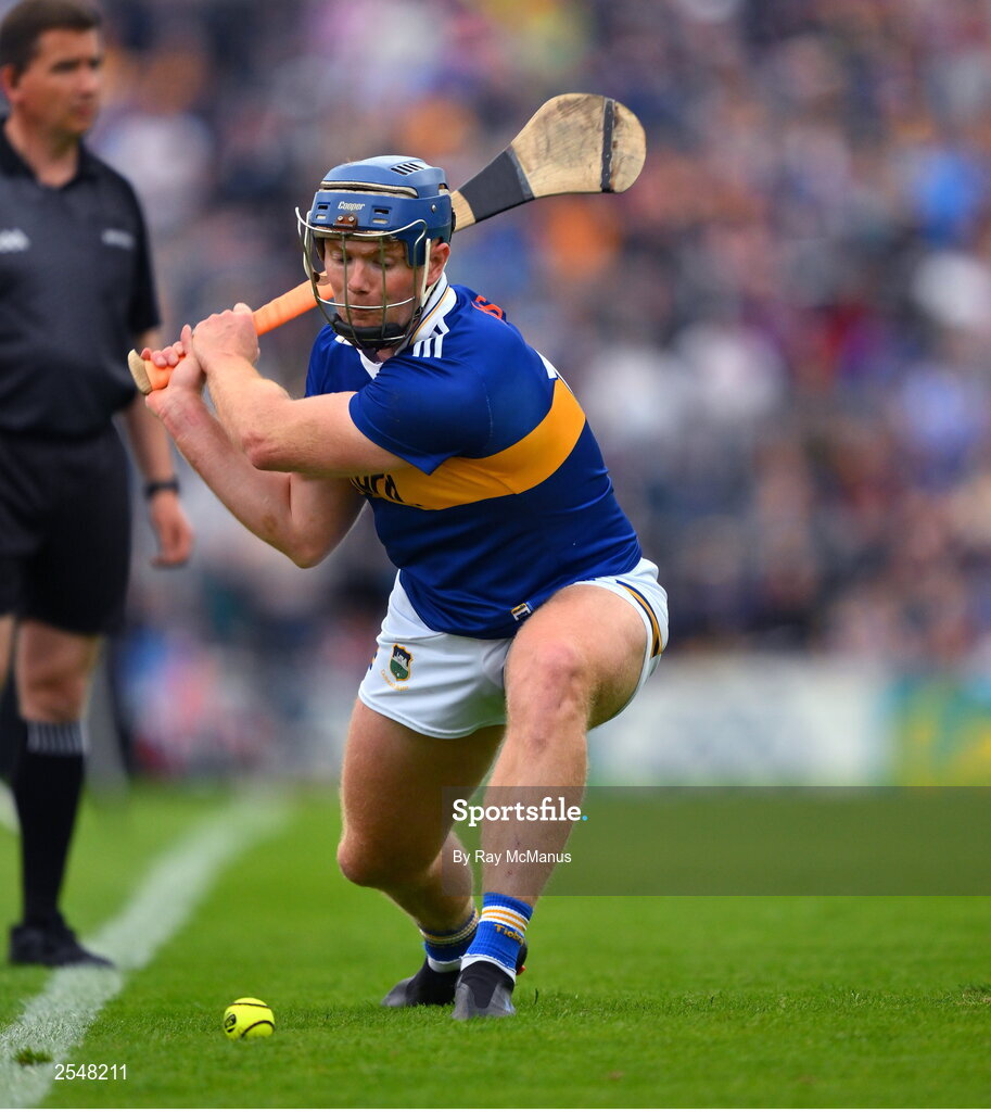 24 June 2023; Jason Forde of Tipperary takes a line ball during the GAA Hurling All-Ireland Senior Championship Quarter Final match between Galway and Tipperary at TUS Gaelic Grounds in Limerick. Photo by Ray McManus/Sportsfile