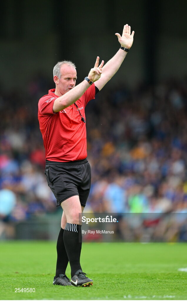24 June 2023; Referee Johnny Murphy during the GAA Hurling All-Ireland Senior Championship Quarter Final match between Clare and Dublin at TUS Gaelic Grounds in Limerick. Photo by Ray McManus/Sportsfile