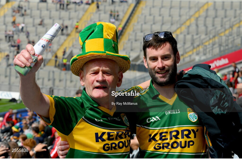 1 July 2023; Kerry supportes Conor, right, and Rueidhrí O'Sullivan, from Kilgannon, before the GAA Football All-Ireland Senior Championship quarter-final match between Kerry and Tyrone at Croke Park in Dublin. Photo by Ray McManus/Sportsfile