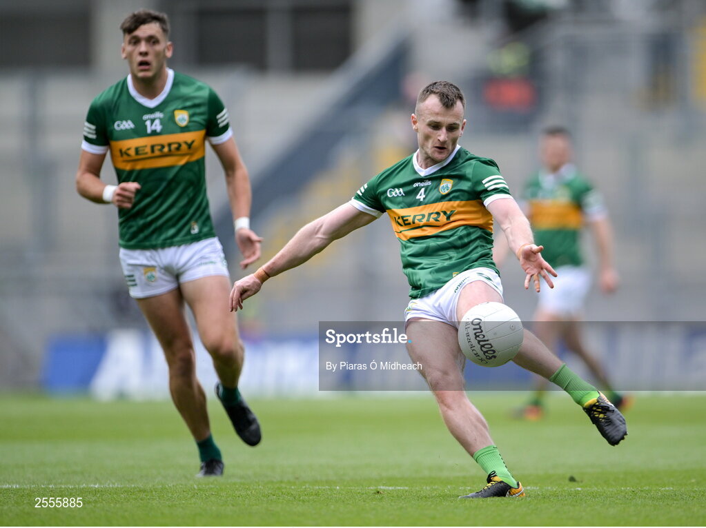 1 July 2023; Tom O'Sullivan of Kerry scores a first half point during the GAA Football All-Ireland Senior Championship quarter-final match between Kerry and Tyrone at Croke Park in Dublin. Photo by Piaras Ó Mídheach/Sportsfile