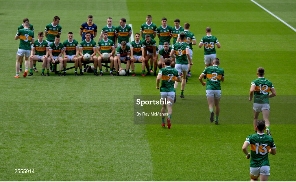 1 July 2023; The Kerry players assemble for the traditional team picture before the GAA Football All-Ireland Senior Championship quarter-final match between Kerry and Tyrone at Croke Park in Dublin. Photo by Ray McManus/Sportsfile