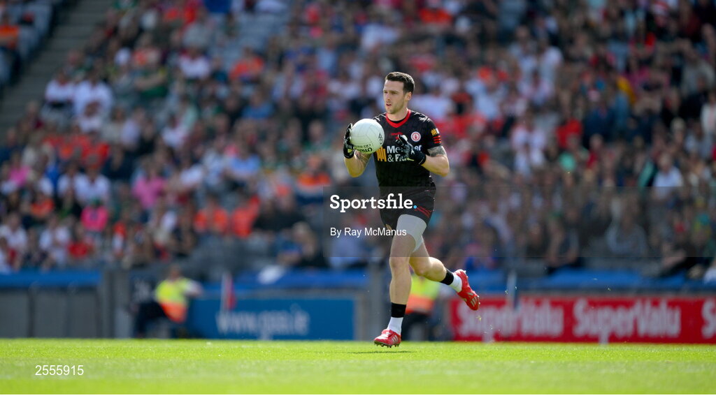 1 July 2023; Tyrone goalkeeper Niall Morgan on a solo run across the halfway line during the GAA Football All-Ireland Senior Championship quarter-final match between Kerry and Tyrone at Croke Park in Dublin. Photo by Ray McManus/Sportsfile