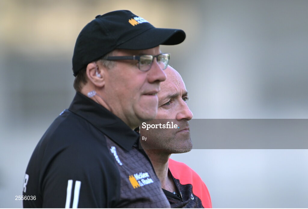 1 July 2023; Tyrone joint-managers Brian Dooher, right, and Feargal Logan during the GAA Football All-Ireland Senior Championship quarter-final match between Armagh and Monaghan at Croke Park in Dublin. Photo by Piaras Ó Mídheach/Sportsfile