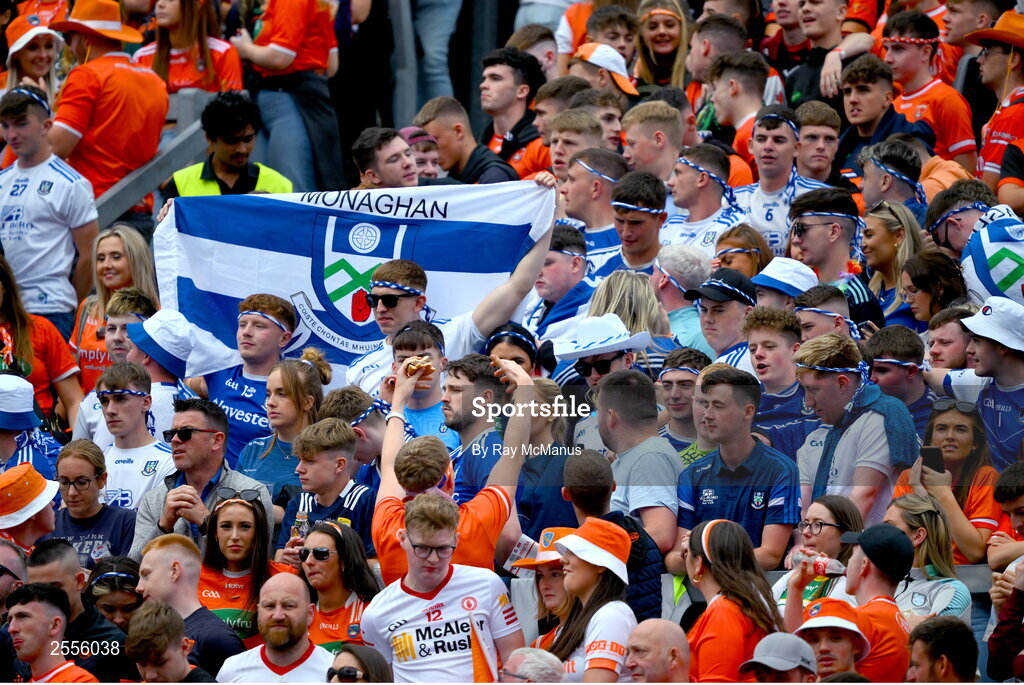 1 July 2023; Monaghan and Armagh supporters, on Hill 16, before the GAA Football All-Ireland Senior Championship quarter-final match between Armagh and Monaghan at Croke Park in Dublin. Photo by Ray McManus/Sportsfile
