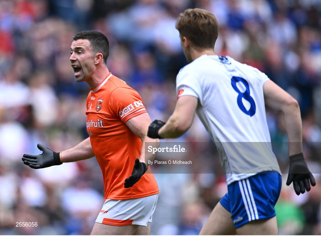 1 July 2023; Aidan Forker of Armagh reacts during the GAA Football All-Ireland Senior Championship quarter-final match between Armagh and Monaghan at Croke Park in Dublin. Photo by Piaras Ó Mídheach/Sportsfile