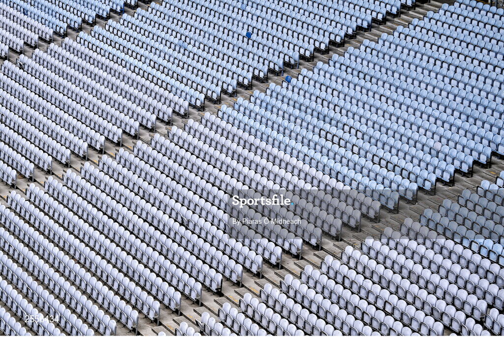 2 July 2023; Seats in the Cusack Stand before the GAA Football All-Ireland Senior Championship quarter-final match between Dublin and Mayo at Croke Park in Dublin. Photo by Piaras Ó Mídheach/Sportsfile
