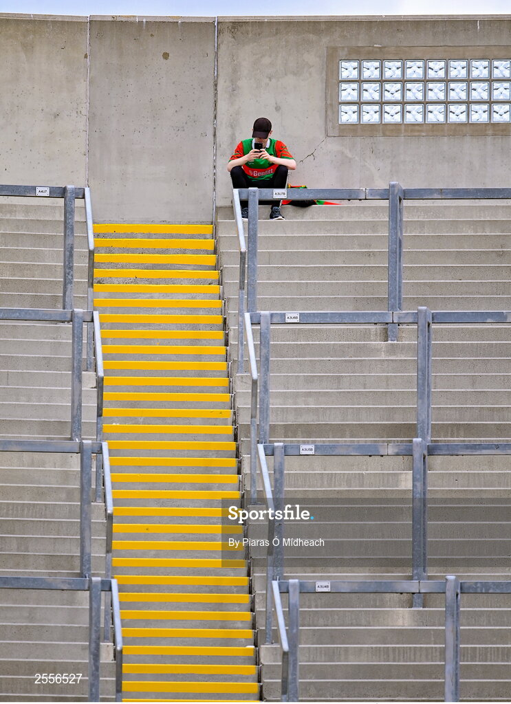 2 July 2023; A Mayo supporter on Hill 16 before the GAA Football All-Ireland Senior Championship quarter-final match between Dublin and Mayo at Croke Park in Dublin. Photo by Piaras Ó Mídheach/Sportsfile