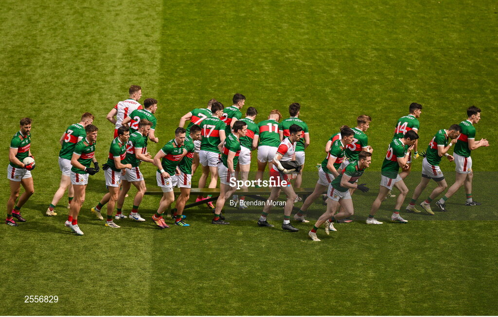 2 July 2023; The Mayo team split from the team photograph before the GAA Football All-Ireland Senior Championship quarter-final match between Dublin and Mayo at Croke Park in Dublin. Photo by Brendan Moran/Sportsfile