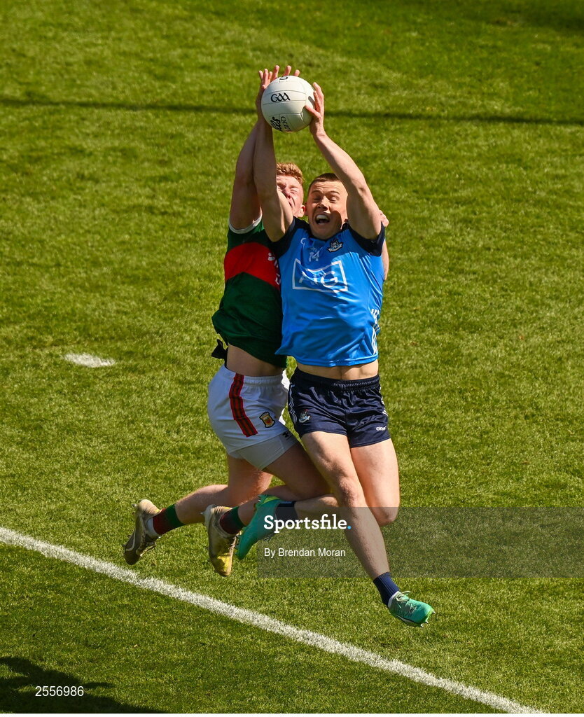 2 July 2023; Con O'Callaghan of Dublin in action against David McBrien of Mayo during the GAA Football All-Ireland Senior Championship quarter-final match between Dublin and Mayo at Croke Park in Dublin. Photo by Brendan Moran/Sportsfile