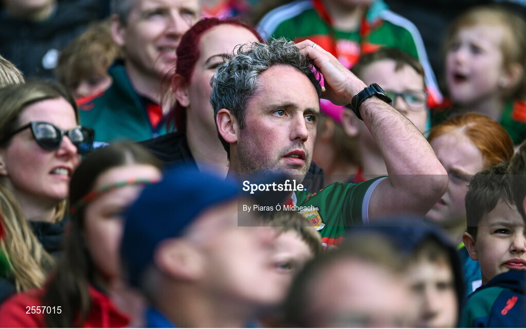 2 July 2023; A Mayo supporter during the GAA Football All-Ireland Senior Championship quarter-final match between Dublin and Mayo at Croke Park in Dublin. Photo by Piaras Ó Mídheach/Sportsfile