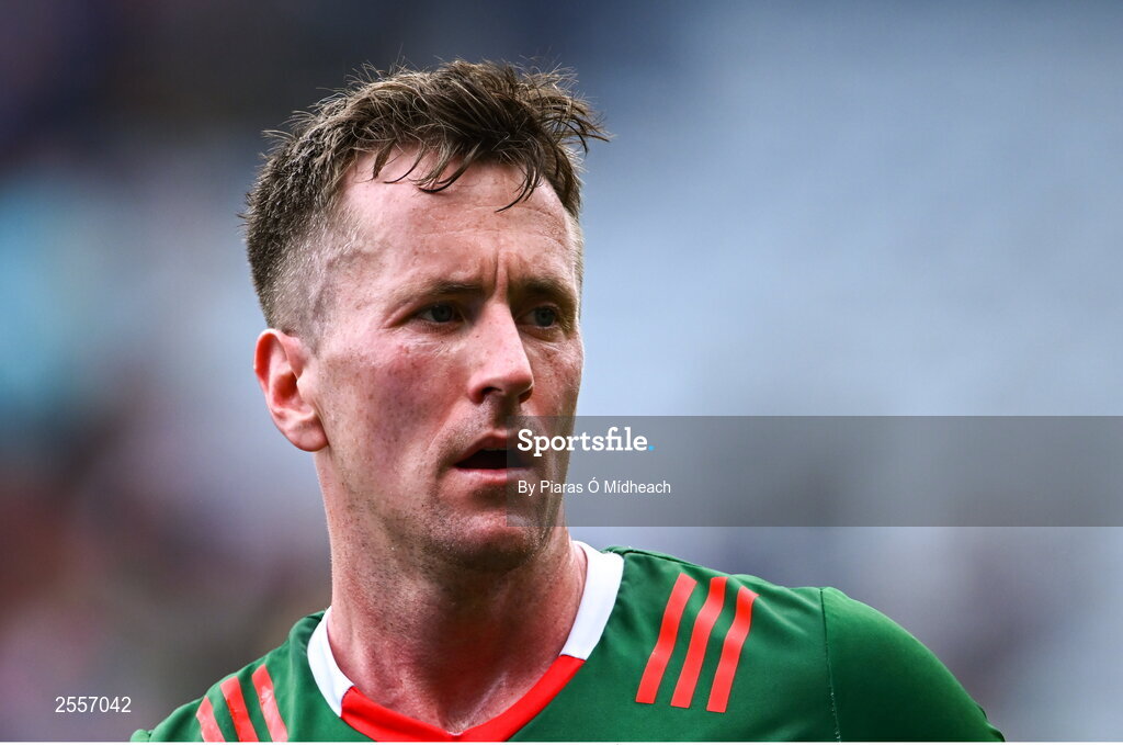 2 July 2023; Cillian O’Connor of Mayo after his side's defeat in the GAA Football All-Ireland Senior Championship quarter-final match between Dublin and Mayo at Croke Park in Dublin. Photo by Piaras Ó Mídheach/Sportsfile