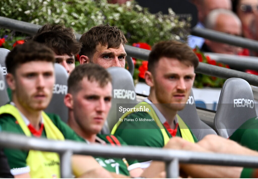 2 July 2023; Aidan O'Shea of Mayo looks on from the Hogan Stand after he was substituted during the GAA Football All-Ireland Senior Championship quarter-final match between Dublin and Mayo at Croke Park in Dublin. Photo by Piaras Ó Mídheach/Sportsfile
