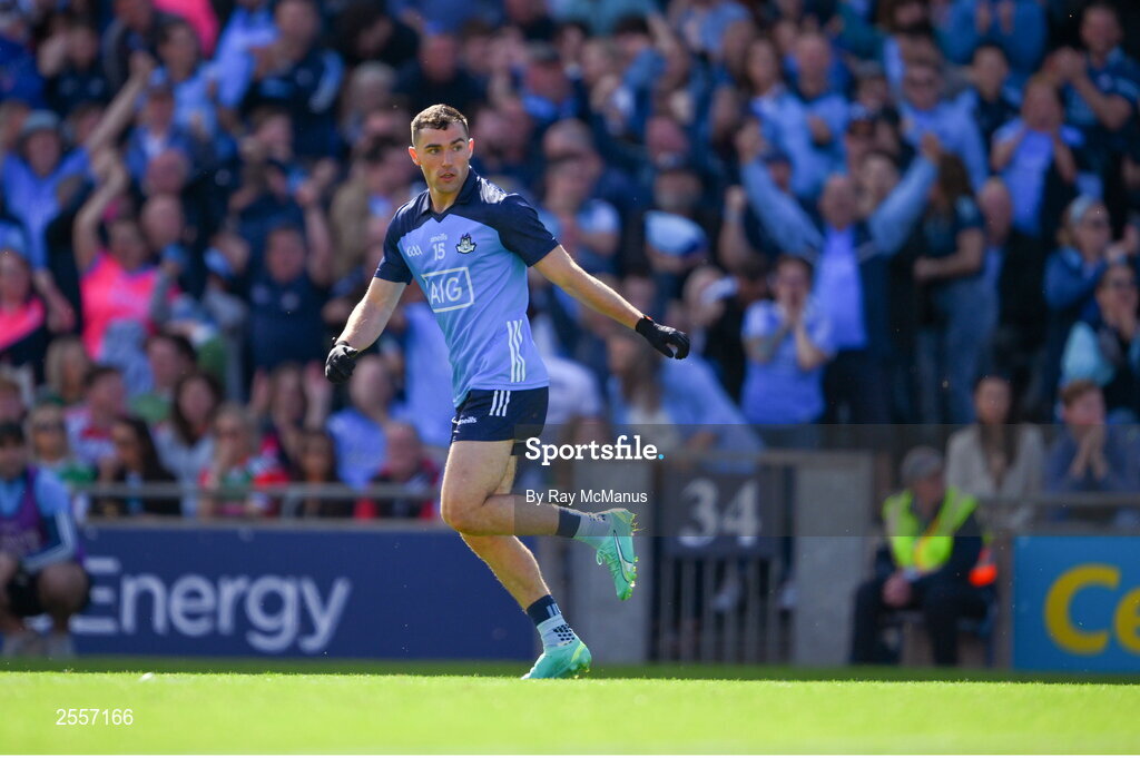 2 July 2023; Colm Basquel of Dublin celebrates scoring the second goal during the GAA Football All-Ireland Senior Championship quarter-final match between Dublin and Mayo at Croke Park in Dublin. Photo by Ray McManus/Sportsfile