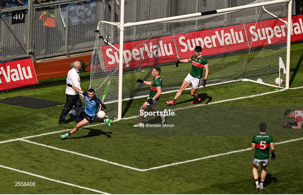 2 July 2023; Colm Basquel of Dublin celebrates after scoring his and his side's second goal during the GAA Football All-Ireland Senior Championship quarter-final match between Dublin and Mayo at Croke Park in Dublin. Photo by Brendan Moran/Sportsfile