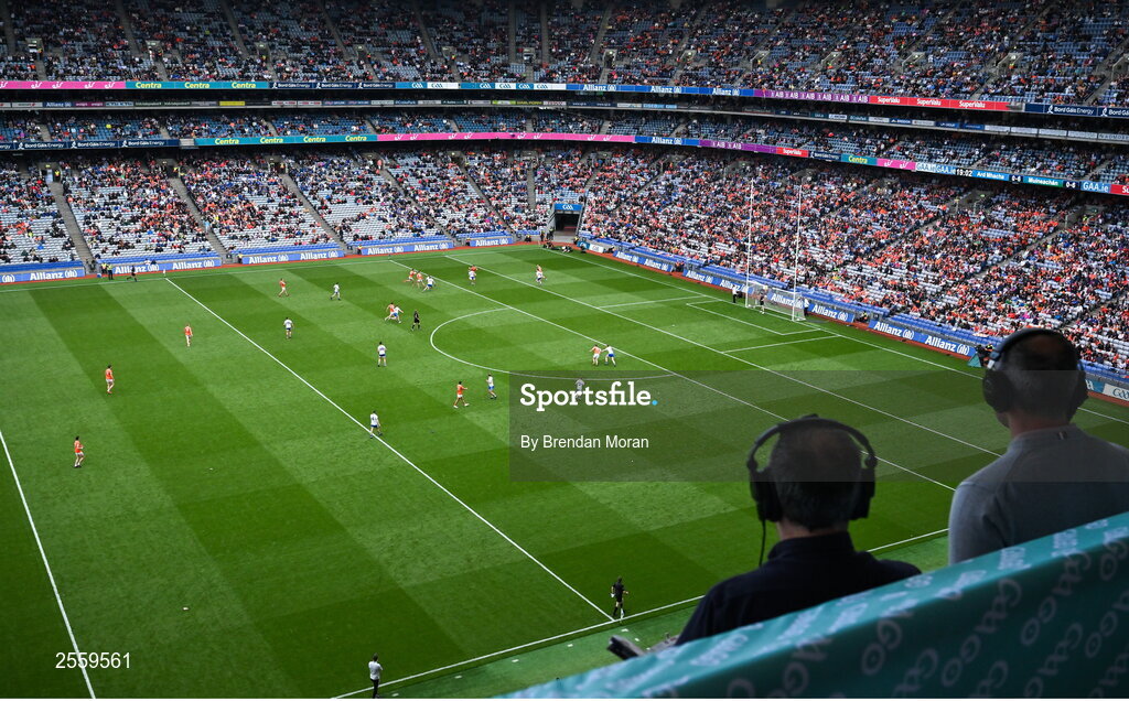 1 July 2023; GAAGO commentator Mike Finnerty and analyst Michael Murphy during the GAA Football All-Ireland Senior Championship quarter-final match between Armagh and Monaghan at Croke Park in Dublin. Photo by Brendan Moran/Sportsfile