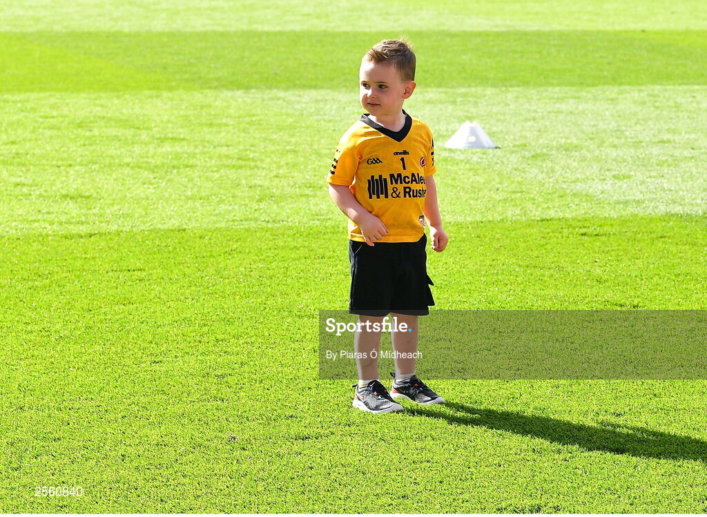 1 July 2023; Christy Morgan, age 3, son of Tyrone goalkeeper Niall Morgan after the GAA Football All-Ireland Senior Championship quarter-final match between Kerry and Tyrone at Croke Park in Dublin. Photo by Piaras Ó Mídheach/Sportsfile