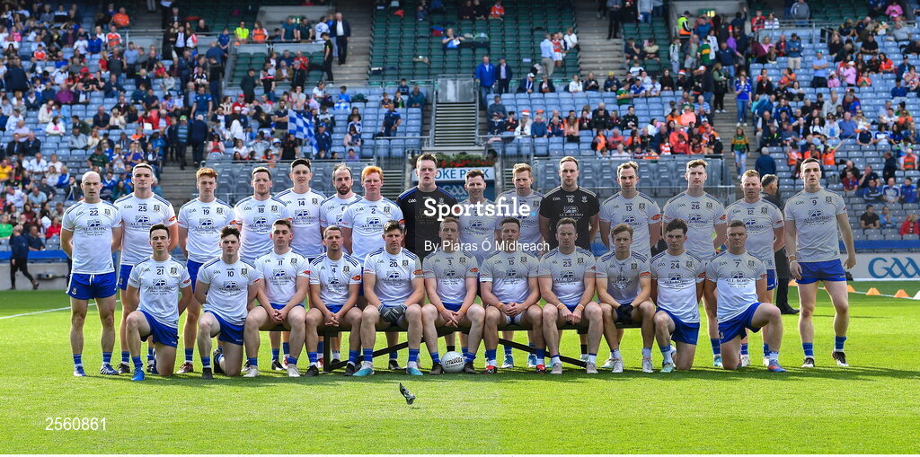 1 July 2023; The Monaghan squad before the GAA Football All-Ireland Senior Championship quarter-final match between Armagh and Monaghan at Croke Park in Dublin. Photo by Piaras Ó Mídheach/Sportsfile