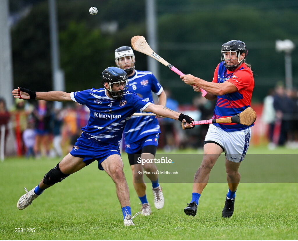 27 July 2023; Beau Bennett of Coastal Virginia in action against David Nathan Stiles of South East 1, 4, during day four of the FRS Recruitment GAA World Games 2023 at the Owenbeg Centre of Excellence in Dungiven, Derry. Photo by Piaras Ó Mídheach/Sportsfile