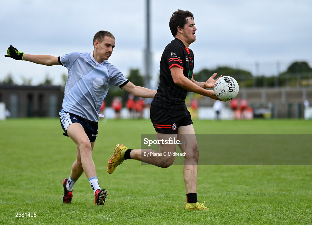 27 July 2023; Matt Fornari of Canada in action against Galicia Blue during day four of the FRS Recruitment GAA World Games 2023 at the Owenbeg Centre of Excellence in Dungiven, Derry. Photo by Piaras Ó Mídheach/Sportsfile