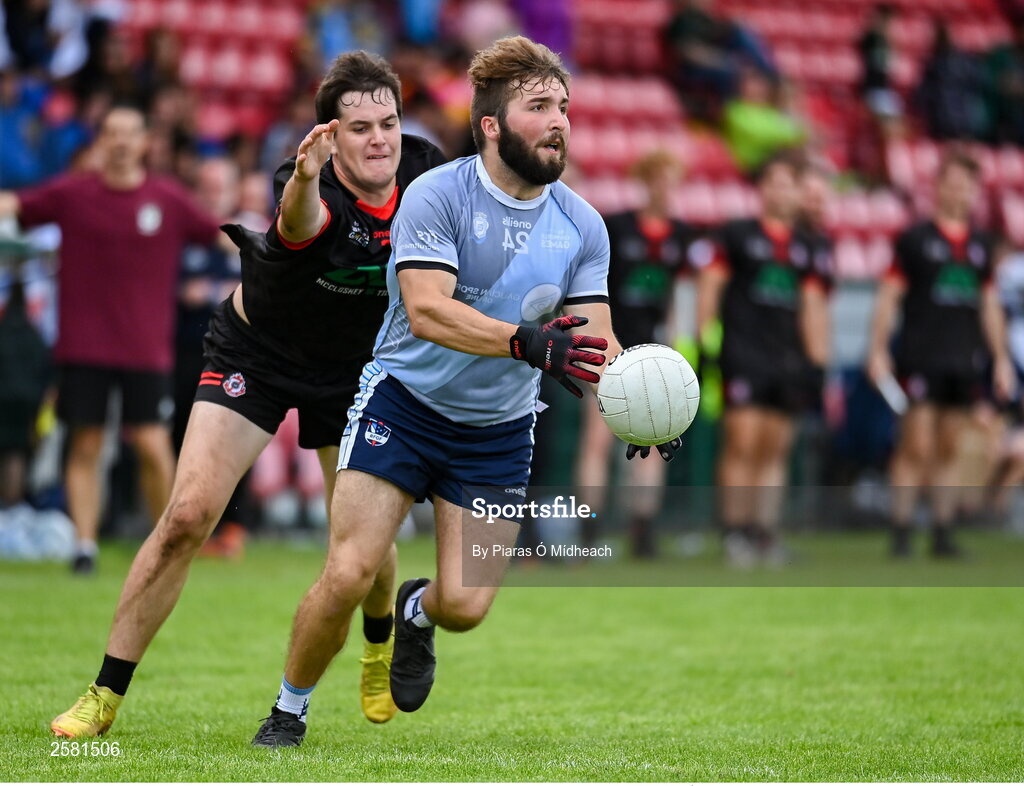 27 July 2023; Action from Canada against Galicia Blue during day four of the FRS Recruitment GAA World Games 2023 at the Owenbeg Centre of Excellence in Dungiven, Derry. Photo by Piaras Ó Mídheach/Sportsfile