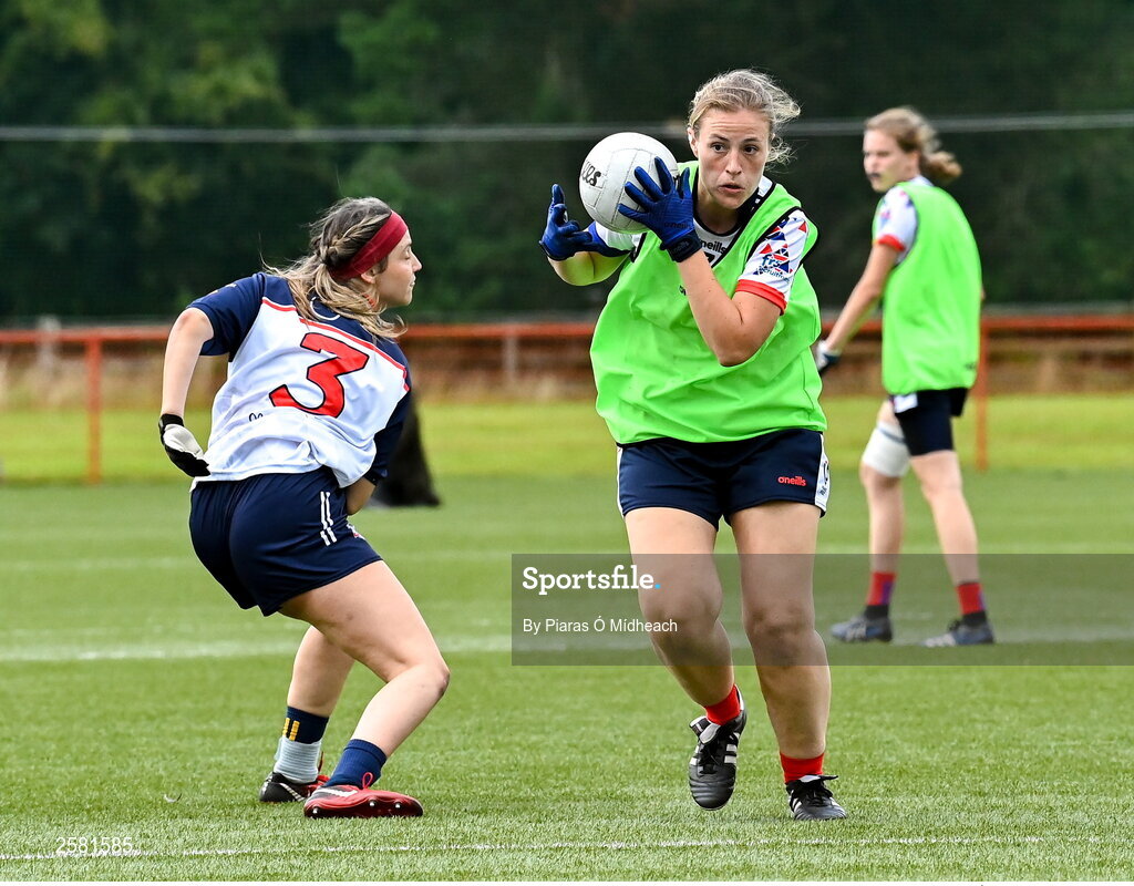 27 July 2023; Action from New York Liberty against France Red during day four of the FRS Recruitment GAA World Games 2023 at the Owenbeg Centre of Excellence in Dungiven, Derry. Photo by Piaras Ó Mídheach/Sportsfile