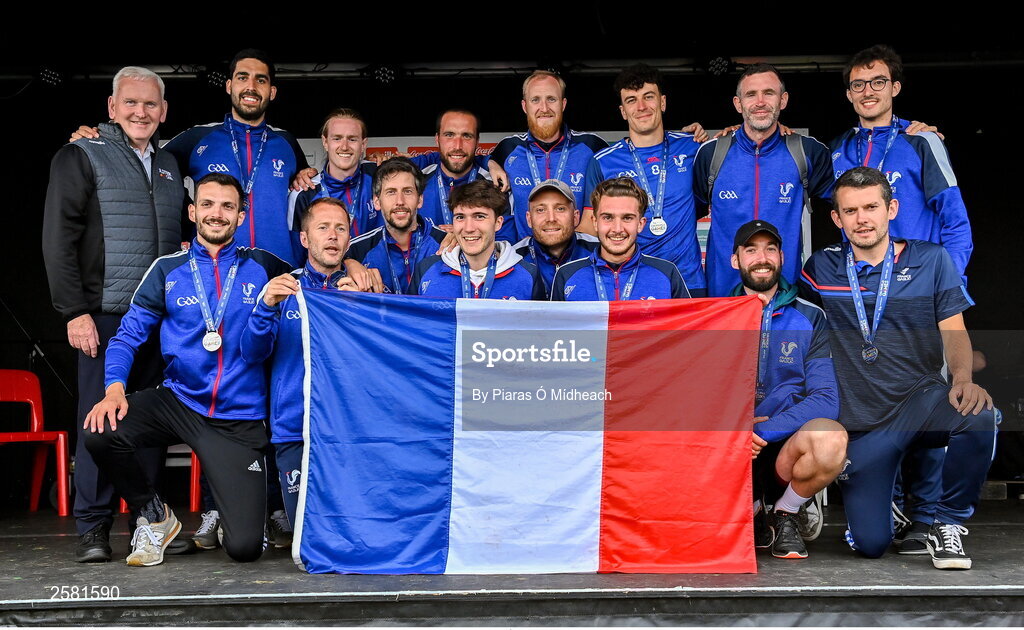 27 July 2023; France footballers during day four of the FRS Recruitment GAA World Games 2023 at the Owenbeg Centre of Excellence in Dungiven, Derry. Photo by Piaras Ó Mídheach/Sportsfile