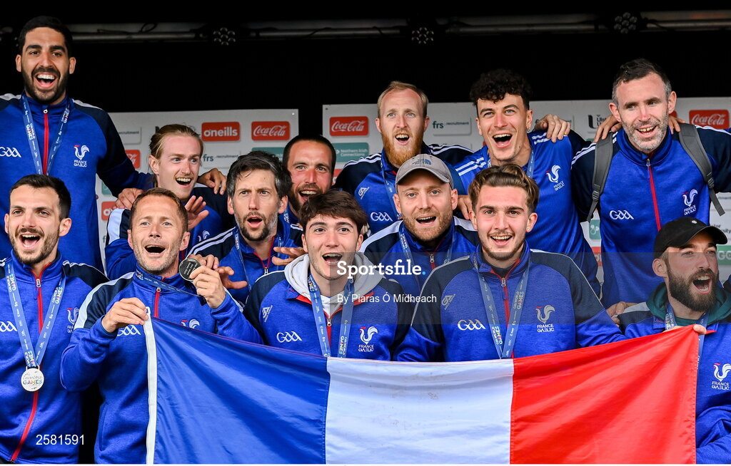 27 July 2023; France footballers during day four of the FRS Recruitment GAA World Games 2023 at the Owenbeg Centre of Excellence in Dungiven, Derry. Photo by Piaras Ó Mídheach/Sportsfile
