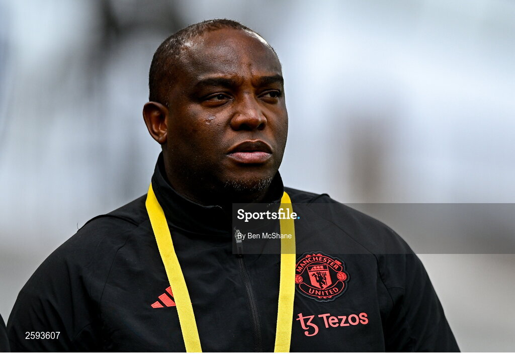 6 August 2023; Manchester United assistant manager Benni McCarthy before the pre-season friendly match between Manchester United and Athletic Bilbao at the Aviva Stadium in Dublin. Photo by Ben McShane/Sportsfile