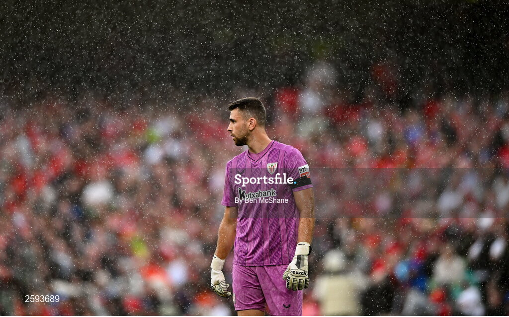 6 August 2023; Unai Simón of Athletic Bilbao during the pre-season friendly match between Manchester United and Athletic Bilbao at the Aviva Stadium in Dublin. Photo by Ben McShane/Sportsfile