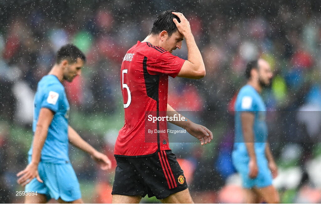 6 August 2023; Harry Maguire of Manchester United during the pre-season friendly match between Manchester United and Athletic Bilbao at the Aviva Stadium in Dublin. Photo by David Fitzgerald/Sportsfile