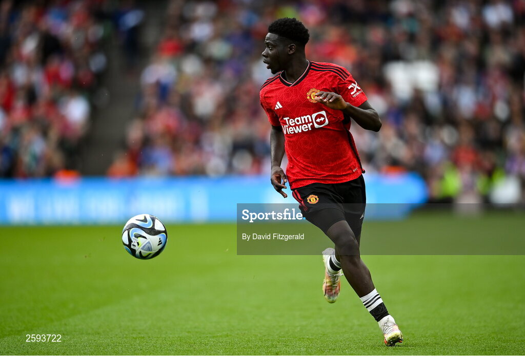 6 August 2023; Omari Forson of Manchester United during the pre-season friendly match between Manchester United and Athletic Bilbao at the Aviva Stadium in Dublin. Photo by David Fitzgerald/Sportsfile