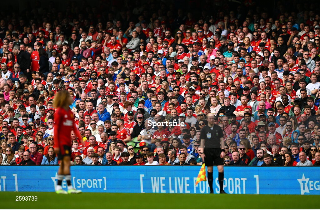 6 August 2023; Supporters during the pre-season friendly match between Manchester United and Athletic Bilbao at the Aviva Stadium in Dublin. Photo by Ben McShane/Sportsfile