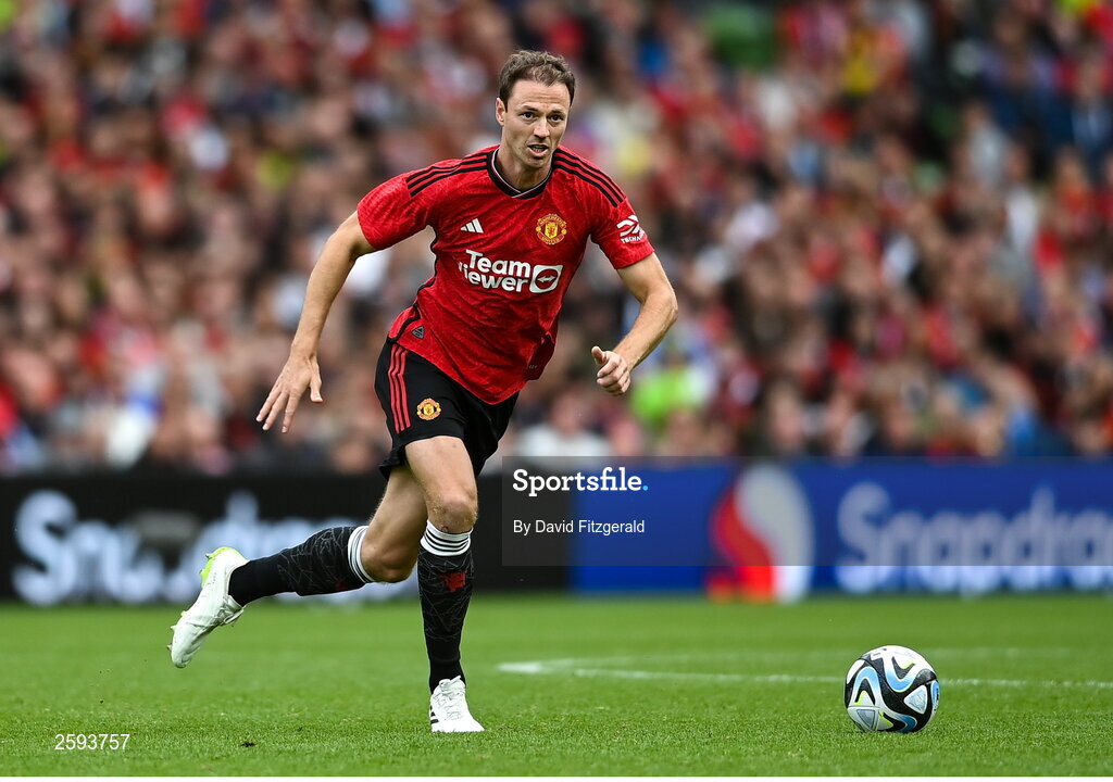 6 August 2023; Jonny Evans of Manchester United during the pre-season friendly match between Manchester United and Athletic Bilbao at the Aviva Stadium in Dublin. Photo by David Fitzgerald/Sportsfile