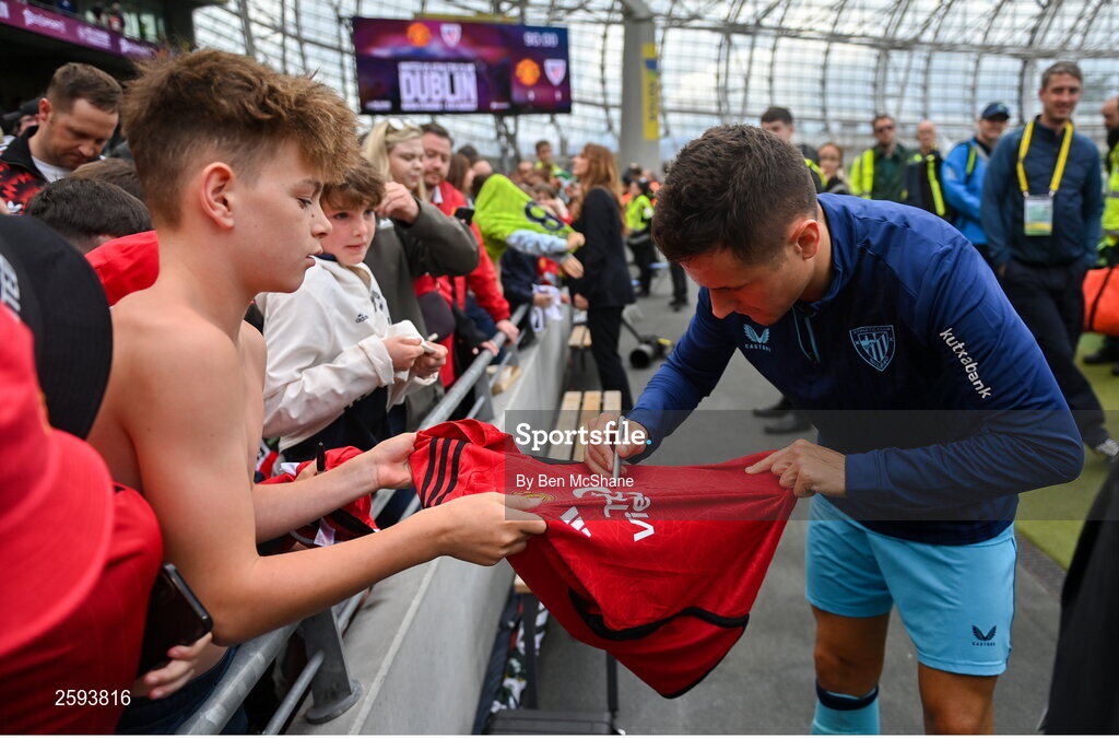 6 August 2023; Ander Herrera of Athletic Bilbao signs autographs for supporters after the pre-season friendly match between Manchester United and Athletic Bilbao at the Aviva Stadium in Dublin. Photo by Ben McShane/Sportsfile