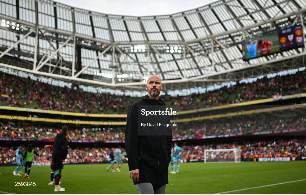 6 August 2023; Manchester United manager Erik ten Hag after the pre-season friendly match between Manchester United and Athletic Bilbao at the Aviva Stadium in Dublin. Photo by David Fitzgerald/Sportsfile