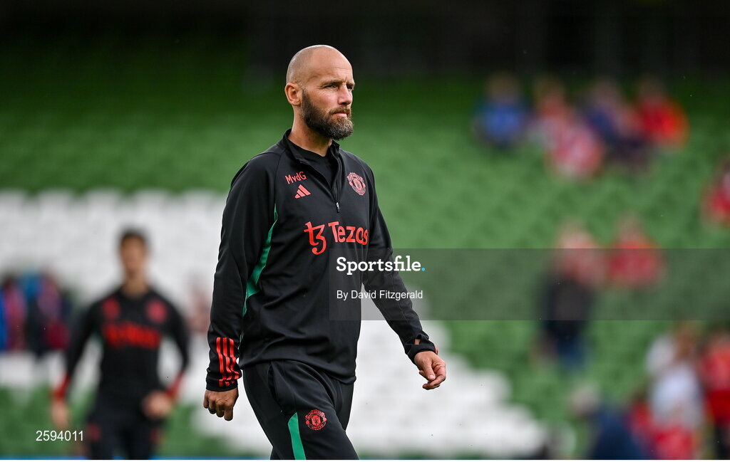 6 August 2023; Manchester United assistant manager Mitchell van der Gaag before the pre-season friendly match between Manchester United and Athletic Bilbao at the Aviva Stadium in Dublin. Photo by David Fitzgerald/Sportsfile