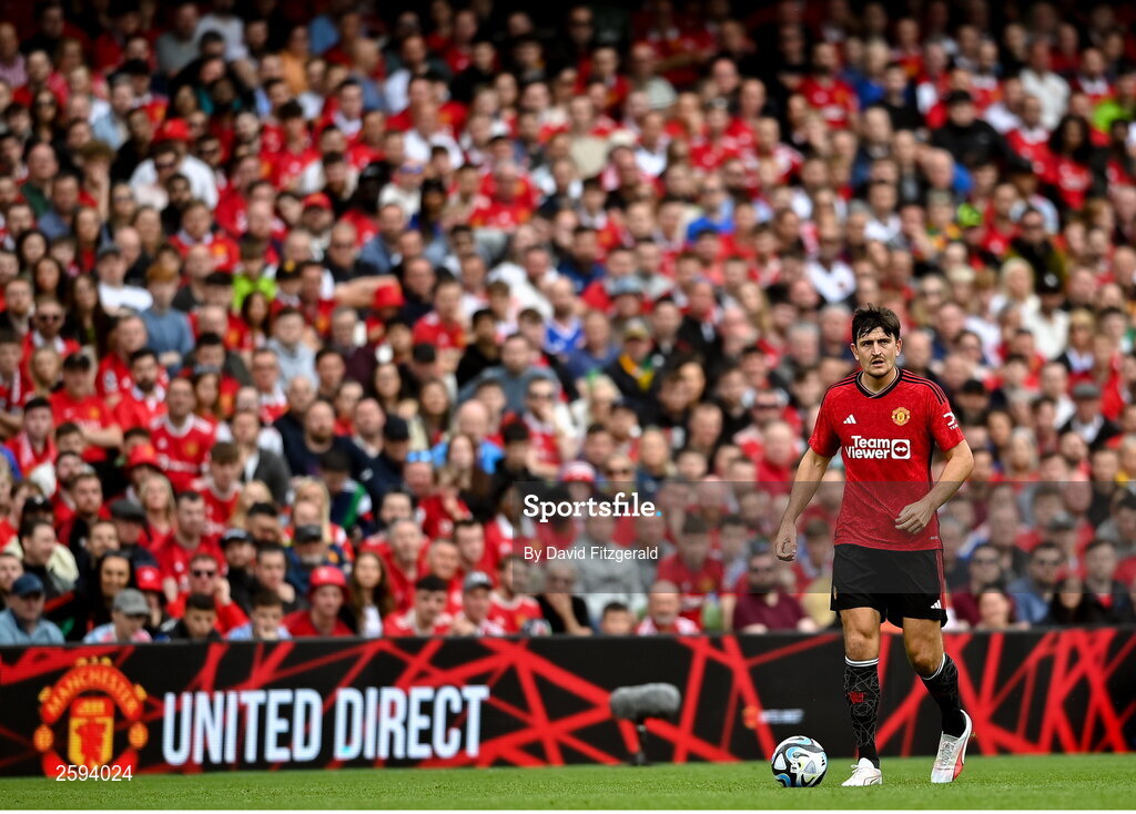 6 August 2023; Harry Maguire of Manchester United during the pre-season friendly match between Manchester United and Athletic Bilbao at the Aviva Stadium in Dublin. Photo by David Fitzgerald/Sportsfile