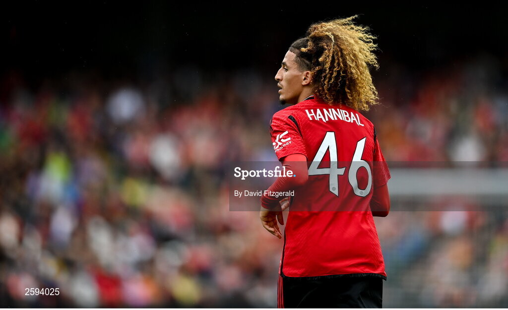 6 August 2023; Hannibal of Manchester United during the pre-season friendly match between Manchester United and Athletic Bilbao at the Aviva Stadium in Dublin. Photo by David Fitzgerald/Sportsfile