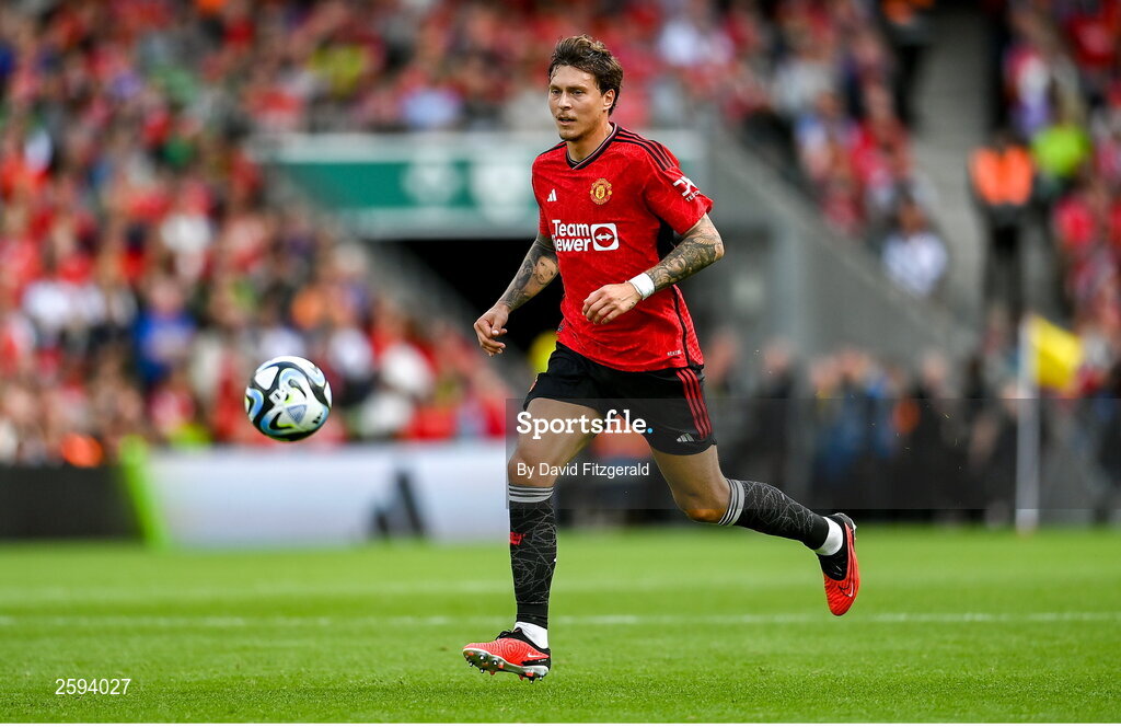 6 August 2023; Victor Lindelöf of Manchester United during the pre-season friendly match between Manchester United and Athletic Bilbao at the Aviva Stadium in Dublin. Photo by David Fitzgerald/Sportsfile