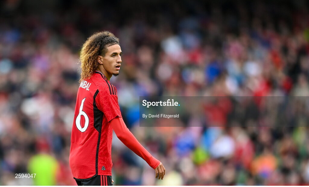 6 August 2023; Hannibal of Manchester United during the pre-season friendly match between Manchester United and Athletic Bilbao at the Aviva Stadium in Dublin. Photo by David Fitzgerald/Sportsfile