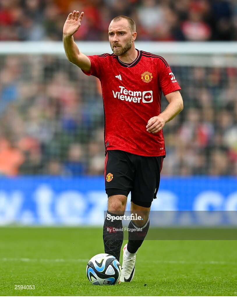 6 August 2023; Christian Eriksen of Manchester United during the pre-season friendly match between Manchester United and Athletic Bilbao at the Aviva Stadium in Dublin. Photo by David Fitzgerald/Sportsfile