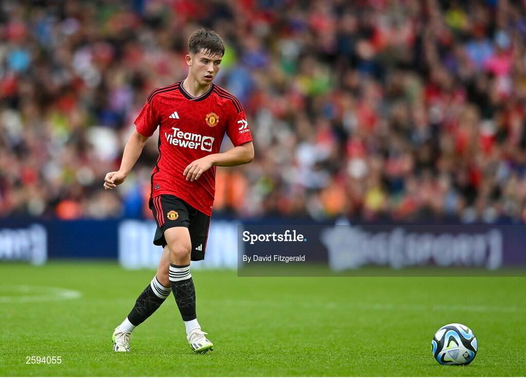 6 August 2023; Dan Gore of Manchester United during the pre-season friendly match between Manchester United and Athletic Bilbao at the Aviva Stadium in Dublin. Photo by David Fitzgerald/Sportsfile