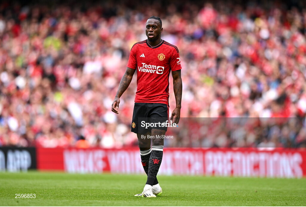 6 August 2023; Aaron Wan-Bissaka of Manchester United during the pre-season friendly match between Manchester United and Athletic Bilbao at the Aviva Stadium in Dublin. Photo by Ben McShane/Sportsfile