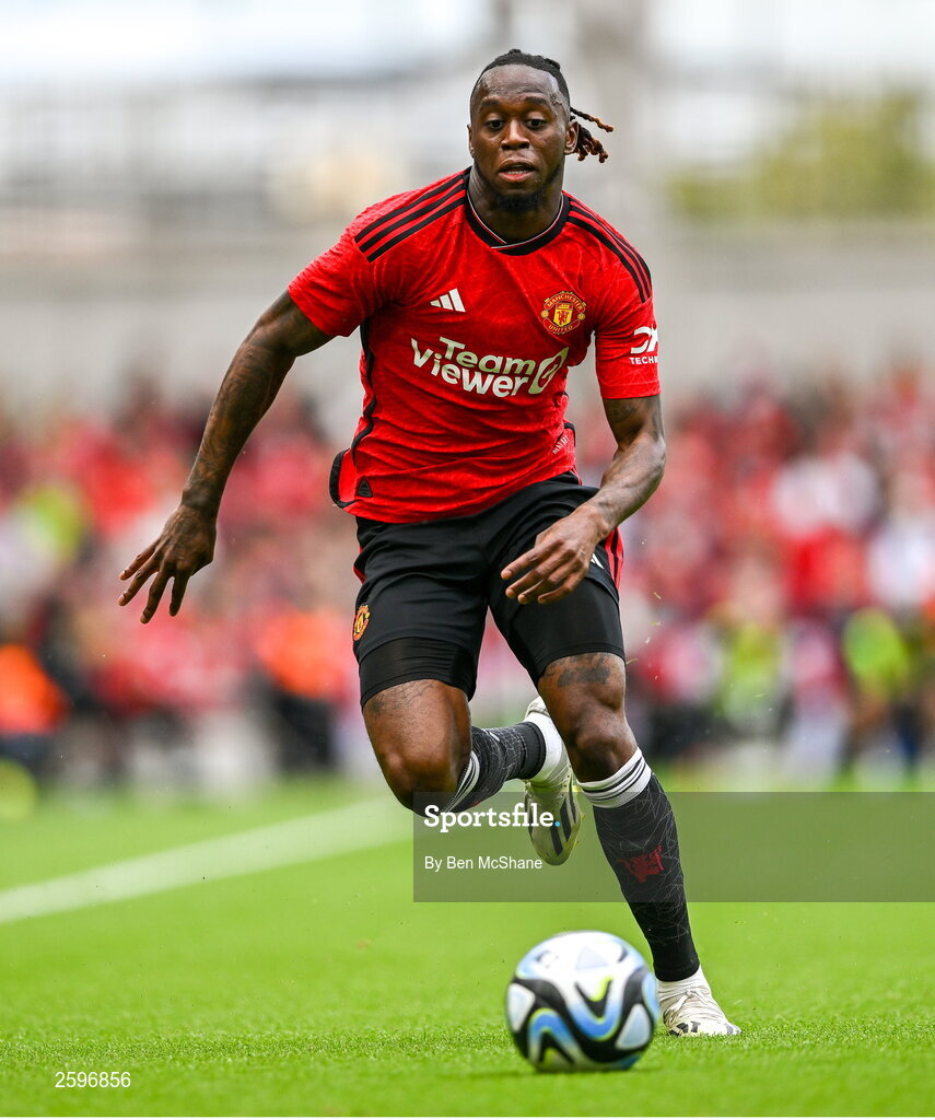 6 August 2023; Aaron Wan-Bissaka of Manchester United during the pre-season friendly match between Manchester United and Athletic Bilbao at the Aviva Stadium in Dublin. Photo by Ben McShane/Sportsfile